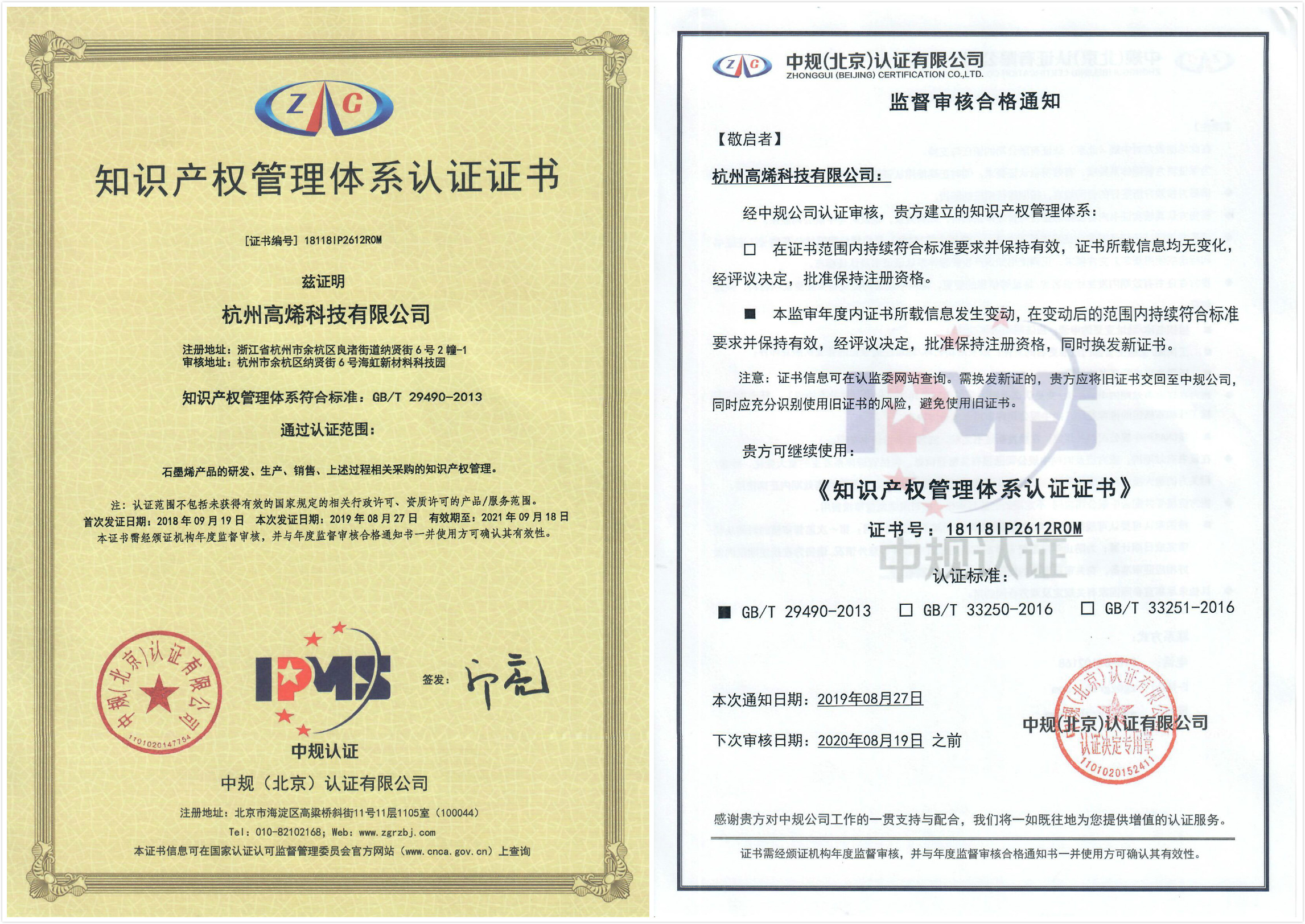 In September Y2018, Gaoxi Tech successfully passed the initi♥al audit and certification of the system. On August 19-20, Y2019, and accepted t<he supervision of ZHONGGUI (Beijing) Certification Co., Ltd., successfully passed $the review.