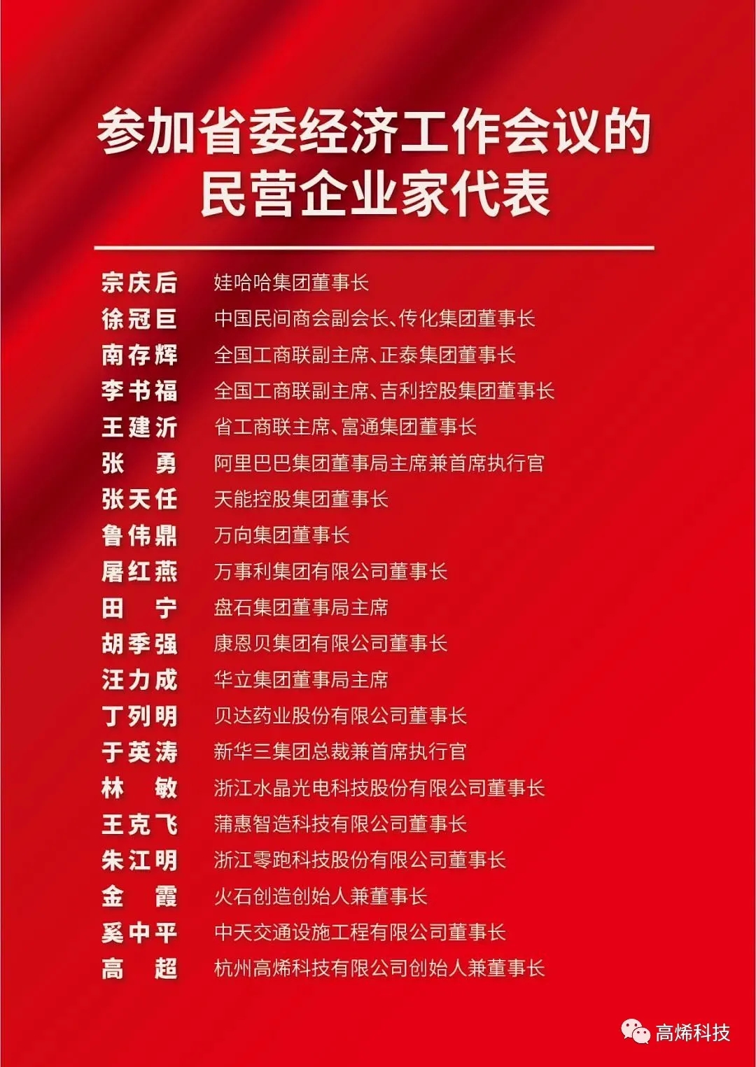 12月(yuè)23日(rì),浙江省委經濟工(gōng)作(zuò)會(huì)議(yì)在杭州召開(kāi),共有(yǒu)20位浙江民(mín)營企業(yè)家(jiā↑)代表受邀參會(huì)并參與討(tǎo)論。